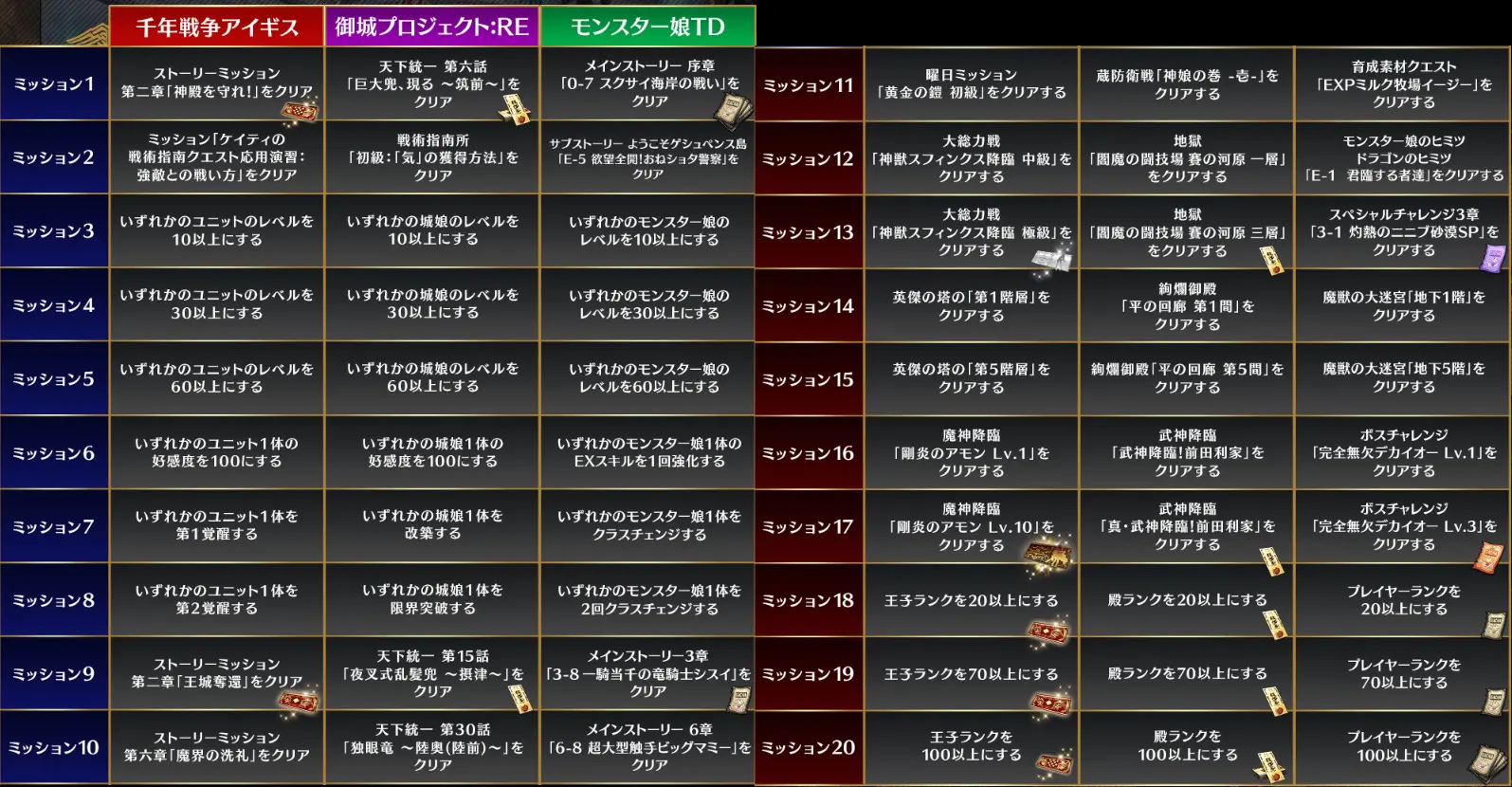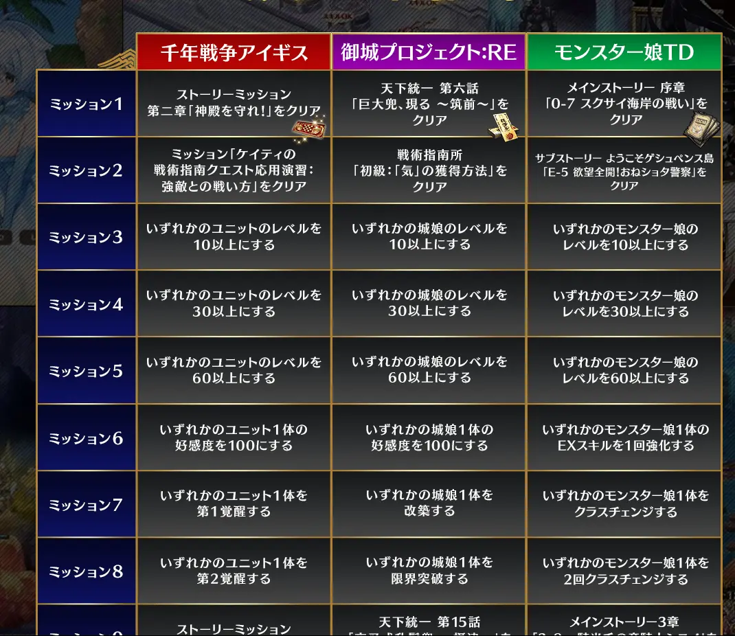※一部ミッションは再度クリアする必要がございます。