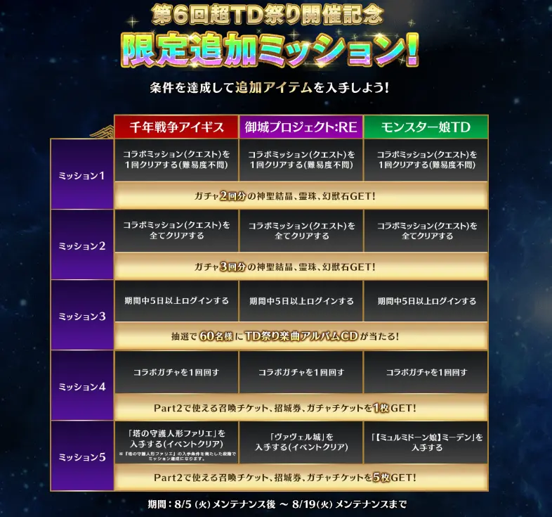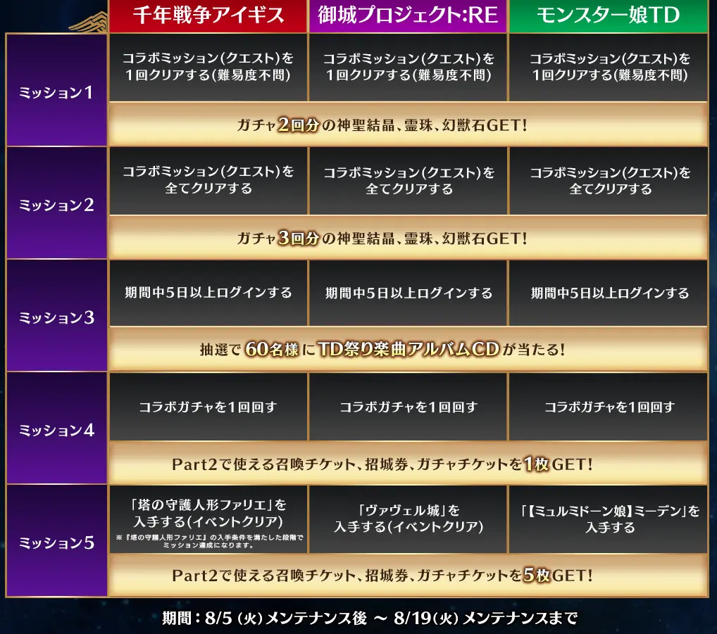 超タワーディフェンスやろうぜ!キャンペーン開催!『千年戦争アイギス』『御城プロジェクト:RE』『モンスター娘TD』の3タイトルをプレイしミッションをクリアして各タイトルで豪華賞品を手に入れよう!