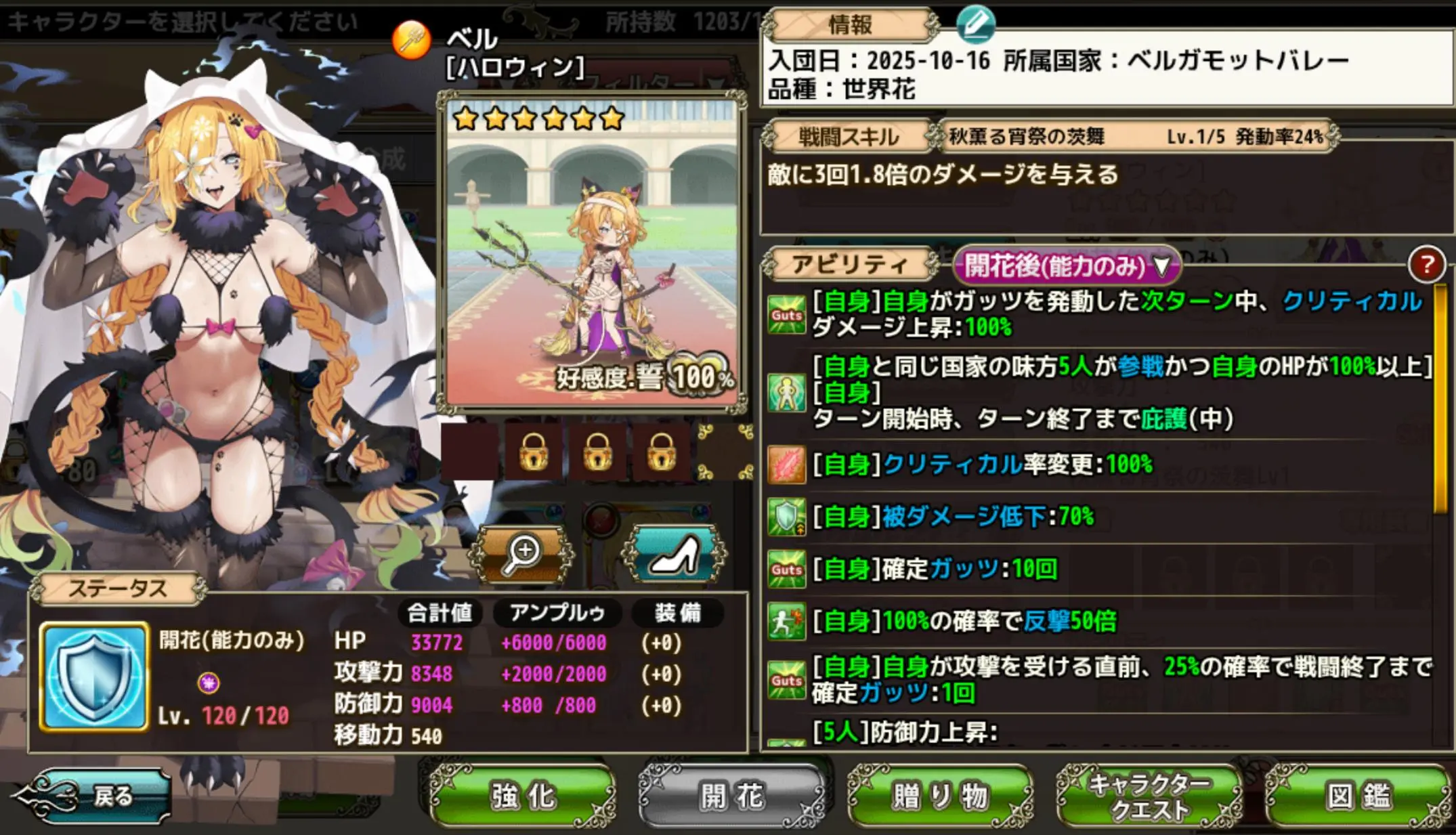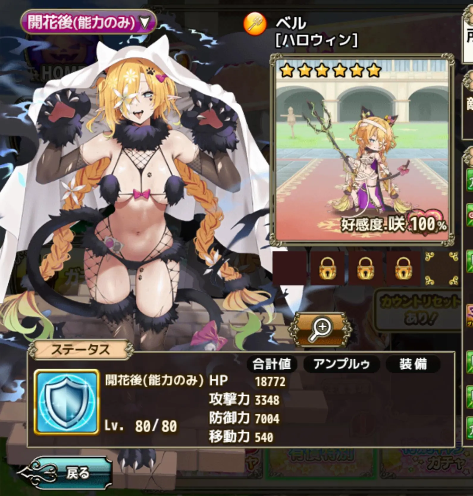 【花騎士】布面積・・・ほぼネ果で叡智なハロウィンの狼さんなベルへの反応!!!